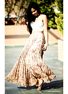Slightly high waist shape a feminine silhouette where deep black velvet weaves an intricate pattern over the turquoise translucent base. This gathered a-line beauty flaunts and lightly sways to the rhythm of your steps, making a flirtatious rustle, as if whispering compliments.